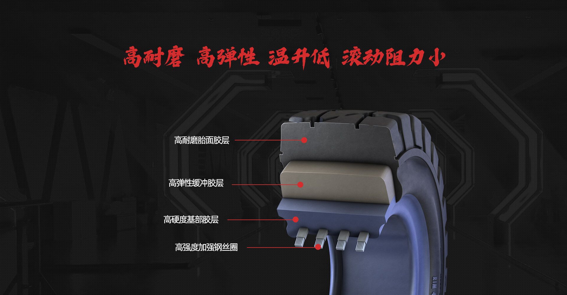 實(shí)心輪胎主要適用于地面復(fù)雜惡劣工況下的叉車、拖車、裝載機(jī)、軍用車輛等機(jī)械車輛的配備,廣泛應(yīng)用 于鋼鐵廠、礦山、建筑工程、港口、物流、廢金屬加工廠等領(lǐng)域。 實(shí)心輪胎胎體為全橡膠構(gòu)成,最大限度地保證了輪胎的耐刺穿性,從根本上消除了工業(yè)車輛在承載運(yùn)行過 程中及在惡劣的作業(yè)環(huán)境中的輪胎刺穿隱患。實(shí)心輪胎的負(fù)荷—形變量小、運(yùn)行穩(wěn)定性好,因其耐刺耐撕、耐 高溫、耐腐蝕、耐磨損,無(wú)需充氣,避免了頻繁補(bǔ)胎換胎的繁重勞動(dòng),可提高車輛的使用率和工作效率,在低 速、高效運(yùn)行車輛